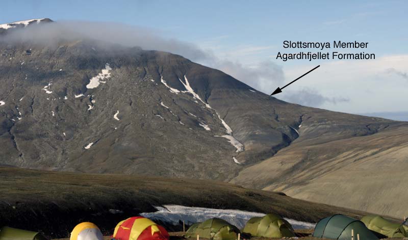Stratigraphically, the specimens are found in the Agardhfjellet formation, Slottsmøya member (Dallmann 1999). This is dated somewhere between the upper Bathonian and the top of the Jurassic, and possibly contemporary with the Kimmeridge Clay Formation of Southern England and North-West France. This is well known for its marine reptile fauna, and appears to be similar in terms of the plesiosaurs and ichthyosaur taxa to this newly discovered fauna. So far none of the other taxa found in the Kimmeridge Clay, such as turtles, fish, marine crocodiles and pterosaurs have been found. Given the limited time spent in the locality, it may simply be that they are harder to spot, and that it takes a while for the eye to become accustomed.