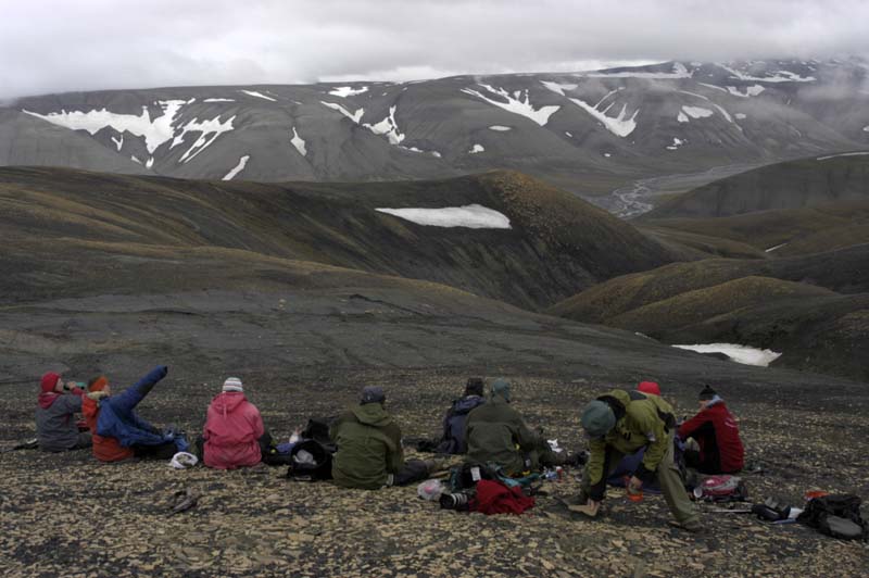 Fragmentary remains from this area have been reported for almost a century (Wiman 1914). However, these have been only of isolated elements. The number and fine preservation of these newly announced specimens makes this a very important locality, and one which may add greatly to our knowledge of plesiosaur anatomy and evolutionary history. The expedition of 2006 was primarily to record the location of these specimens. In 2004 two partial plesiosaurs (probably Kimmerosaurus) and one ichthyosaur skull were collected. In the same area about 10 other specimens were located, but due to problems with the rights to the fossils in the area they are not mapped properly or excavated. In 2006 focus was moved to an area owned by the Norwegian government with the same stratigraphic level exposed. So far 21 plesiosaurs, 6 ichthyosaurs and the large pliosaur have been mapped in this area. The fossils are partly embedded in permafrost, so excavation will be challenging. Of the specimens, nine are in situ and worth excavating - which is not bad for seven days of prospecting. It is planned that the specimens will be excavated on expeditions over the next few years.